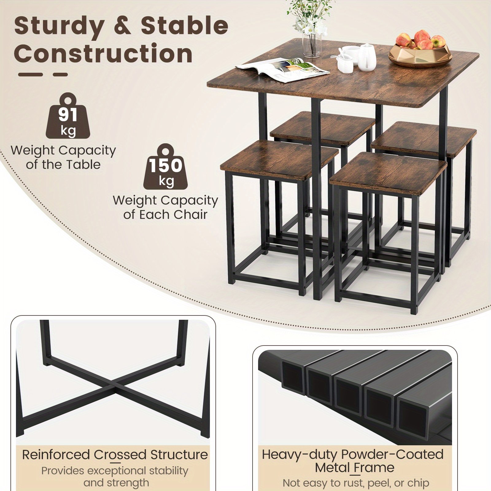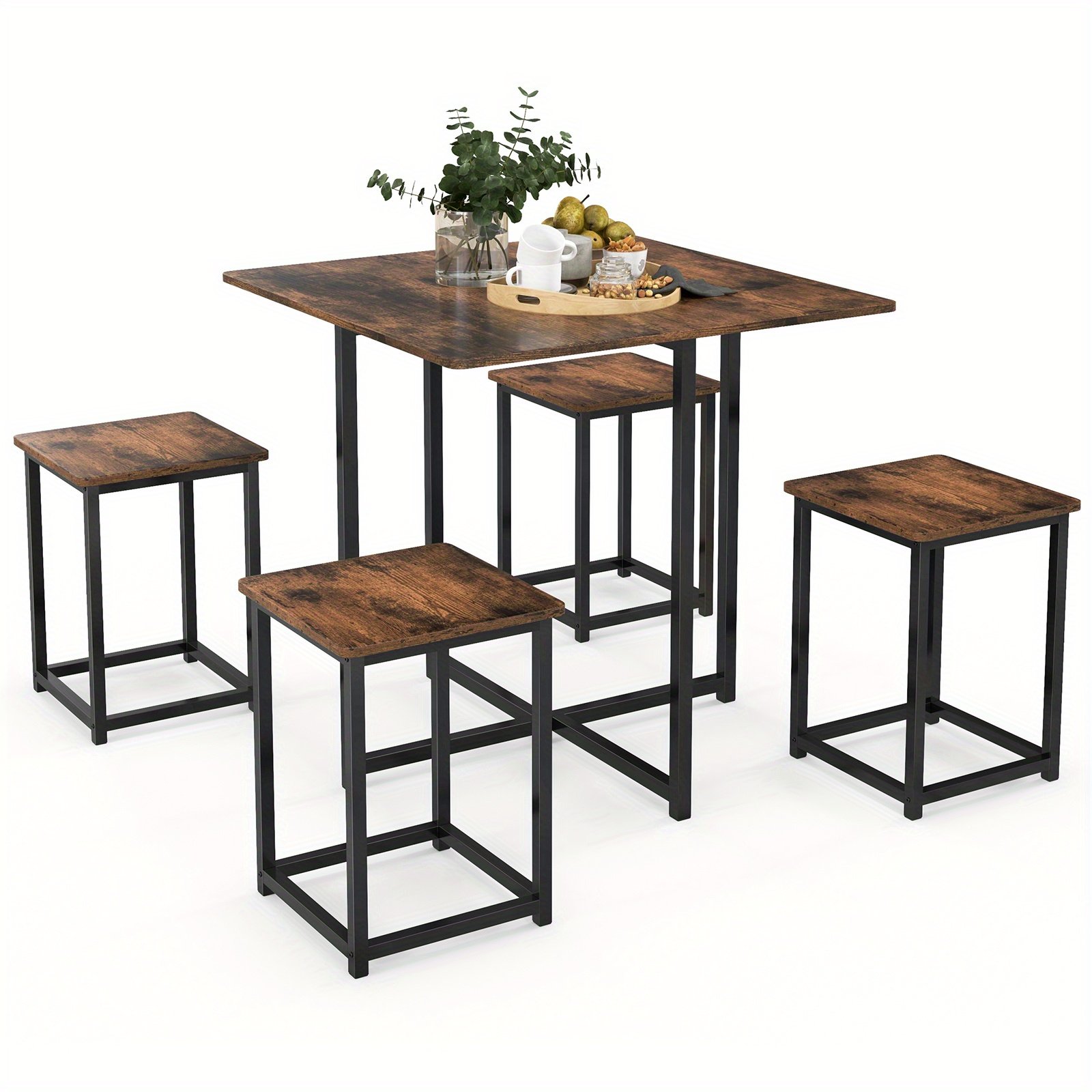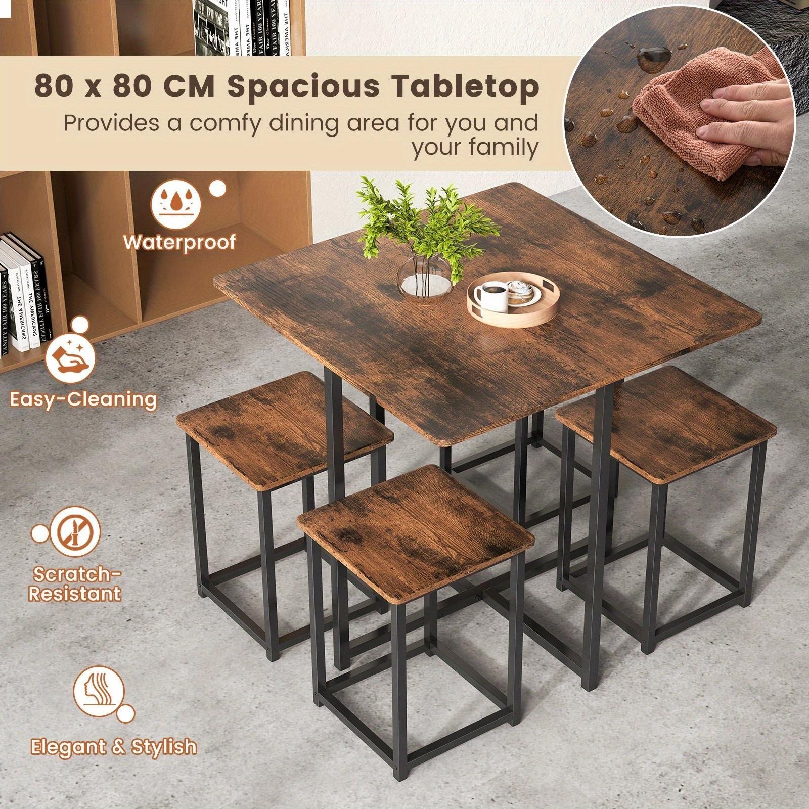 5-Piece Rustic Brown Compact Dining Table & Stool Set