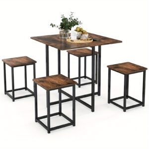Elevate your dining experience — even in smaller spaces — with this beautifully crafted 5-Piece Rustic Brown Dining Table Set. Designed with both style and function in mind, this set includes a sleek rectangular table and four matching stools that tuck neatly underneath when not in use, making it a smart and stylish solution for apartments, small kitchens, or cozy dining areas.
