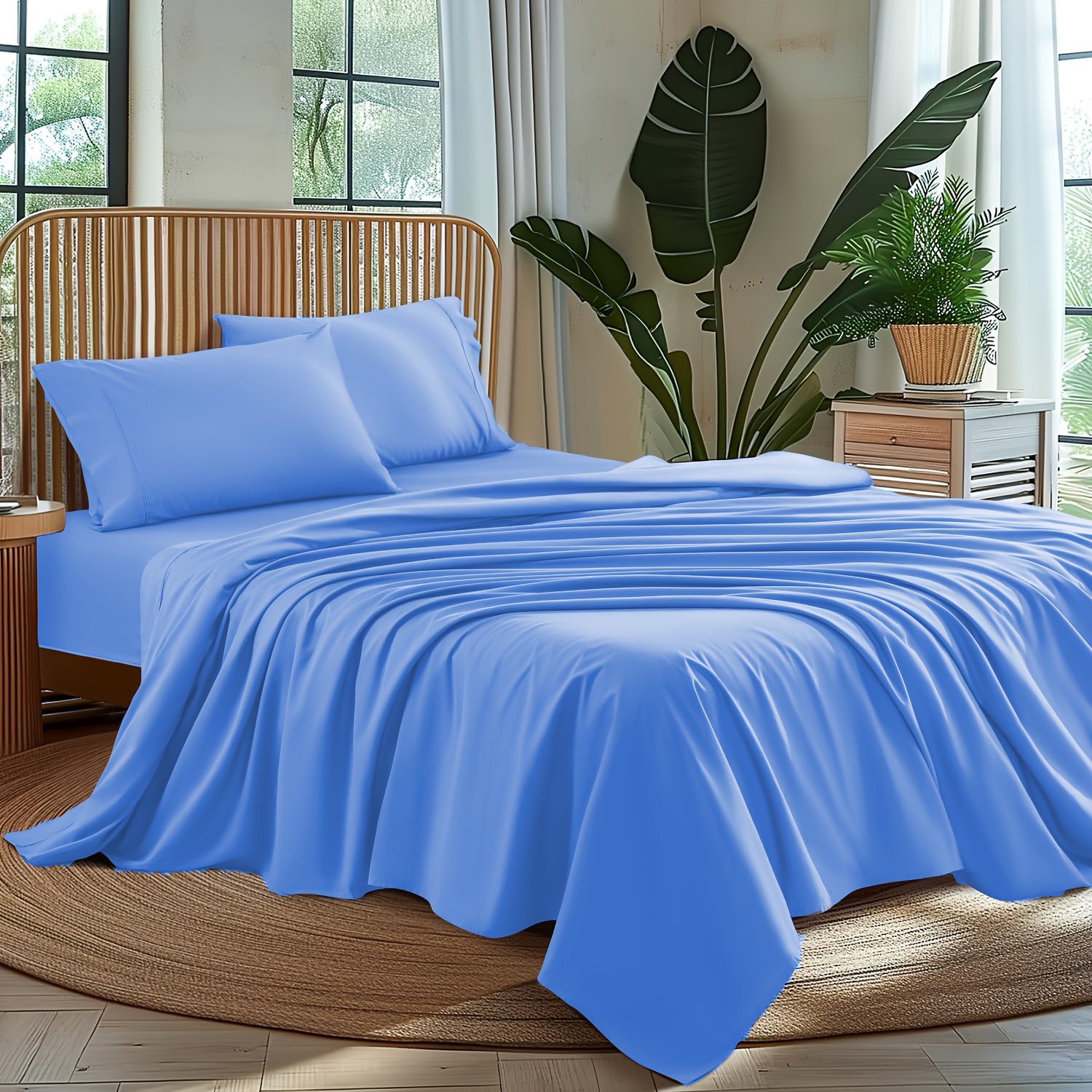 Luxury 1000-Thread Microfiber 4-Piece Bed Sheet Set – Deep Sky Blue (King)