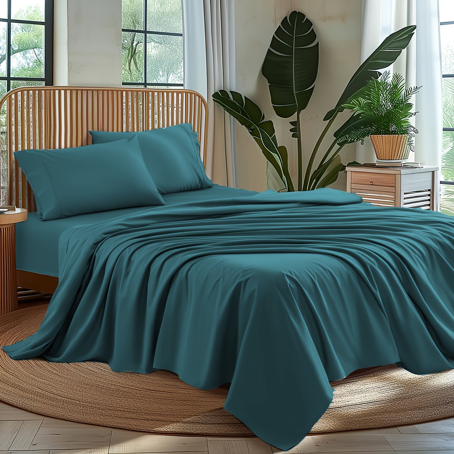 Say hello to the perfect night’s sleep with this 4-Piece Luxury Bed Sheet Set, crafted from ultra-soft, 1000-thread count microfiber that feels as smooth as silk and cool as a breeze. Designed with both comfort and practicality in mind, these sheets feature a breathable, cooling texture that helps regulate body temperature — no more tossing and turning through hot nights or bundling up on cold ones.